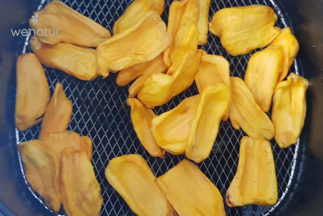Một mẹo nhỏ mà we’natur muốn bật mí: nếu sau vài ngày bạn thấy mít hơi mềm, đừng vội bỏ đi. Hãy cho mít vào nồi chiên không dầu, chỉnh nhiệt ở khoảng 100°C và sấy lại trong 3 phút. Chỉ một thao tác đơn giản, bạn sẽ có ngay món mít giòn như vừa mới sấy xong, màu vàng ươm, giòn tan và thơm phức.