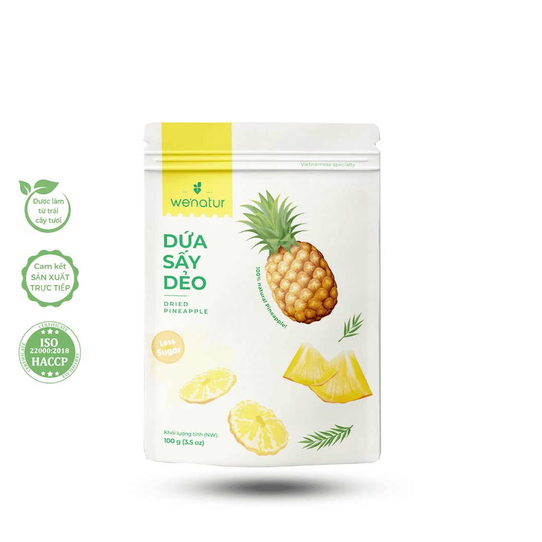 Được lựa chọn kỹ lưỡng từ khâu nguyên liệu cho đến quy trình sản xuất hiện đại, tạo nên sản phẩm dứa sấy dẻo thơm ngon-mềm dẻo