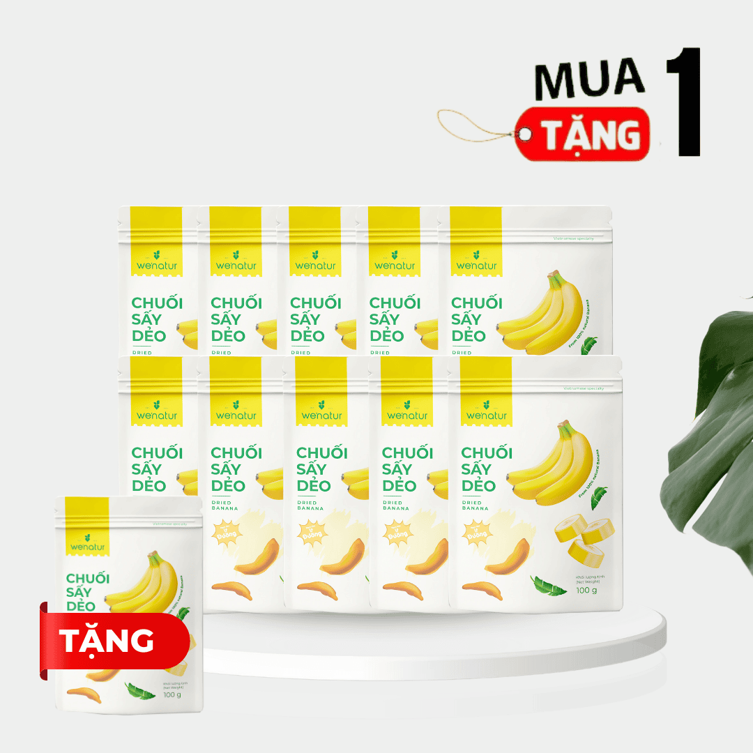 Bao gồm: Mua 10 gói Chuối sấy dẻo we'natur 150g tặng 2 gói Chuối sấy dẻo 150g