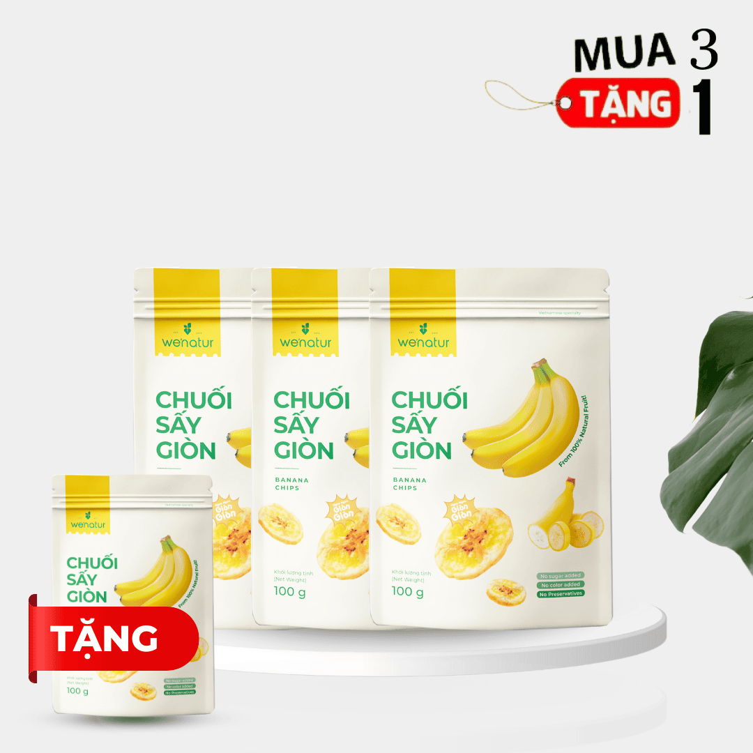 Tên sản phẩm: [MUA 3 TẶNG 1] COMBO 3 GÓI CHUỐI SẤY GIÒN 100G